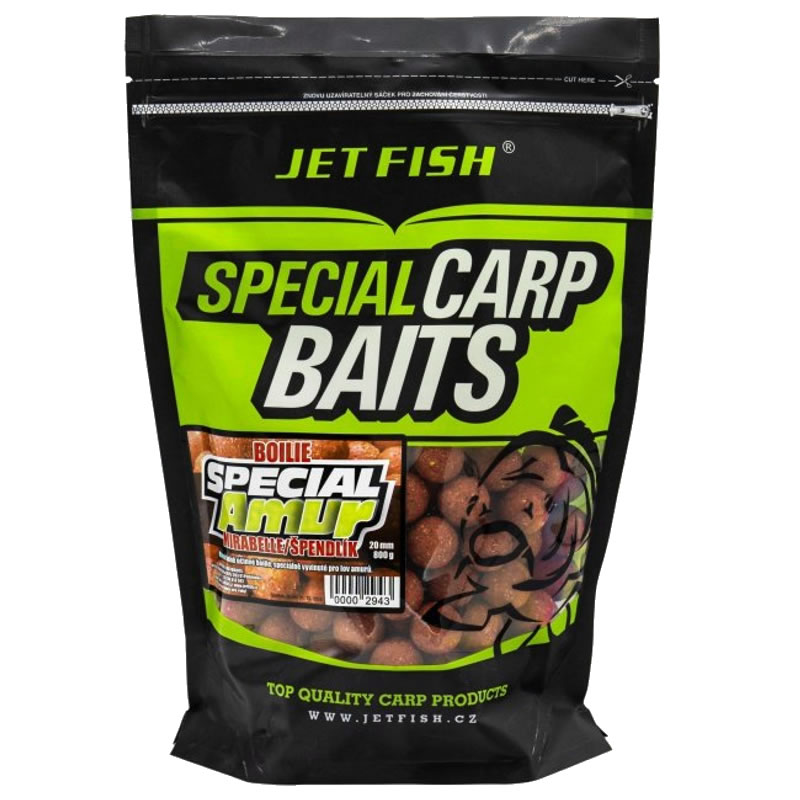 Mimořádně účinné boilie, speciálně vyvinuté pro lov amurů. Obsahuje rostlinné složky a výtažky z rostlin, které amuři doslova zbožňuji a vyhledávají. Boilie je sladké a neobsahuje žádné živočišné přísady. Další složkou je několik druhů obilnin, které jsou pro amura velmi přitažlivé. Během testovaní bylo uloveno velké množství amurů, a to i na vodách, kde jiné nástrahy selhávaly. Jedná se o první příchuť, kterou firma Jet Fish uvedla na trh k přelstění těch největších amurů. Pokud chcete cíleně chytat amury, je toto boilie ta nejlepší volba!