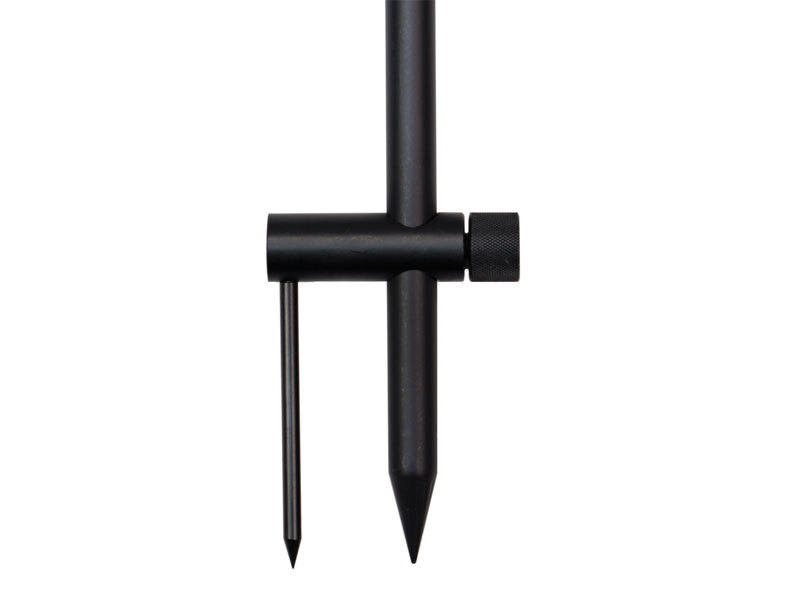 Vyroben z tvrzeného hliníku s matně černým povrchem. Jednoduše se navlékne na vidličku a zašlápne do země.