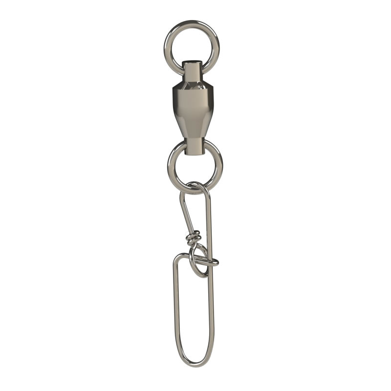 Mořský obratlík s kuličkovým ložiskem a karabinkou Double Insurance v barvě niklu. Obratlík má svařené kroužky k dosažení vyšší pevnosti. Karabinka Double Insurance má dvojitý zámek, takže i při přetížení se sice zdeformuje, ale stále bude držet. Vhodné na mořský rybolov nebo lov sumců. Použijte v kombinaci s Nickel Titanium lankem. K navázání lanka použijte uzel Uni.