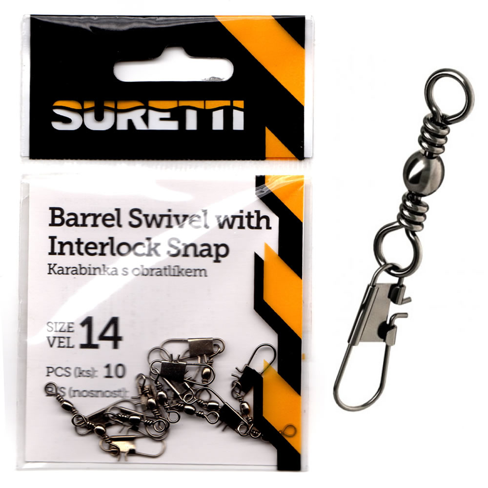Obratlík typu Barrel s bezpečnostní karabinkou Interlock. Balení obsahuje 10ks.