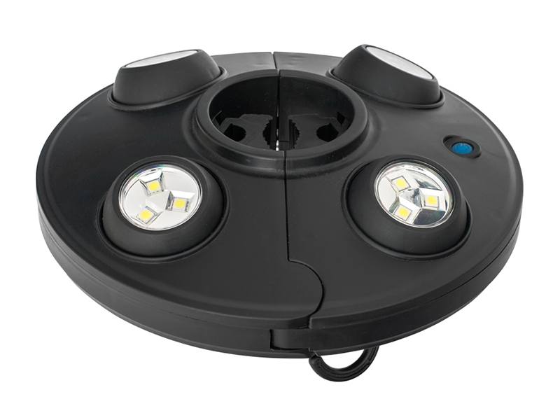 Multifunkční osvětlení pro noční rybolov. Disponuje čtyřmi nezávisle nastavitelnými světly (každé má 3 LED), což umožňuje osvítit celý prostor bivaku. Díky unikátnímu upínacímu systému s čelistmi jej snadno připevníte na tyč deštníku nebo konstrukci bivaku. Má také háčky na zavěšení.