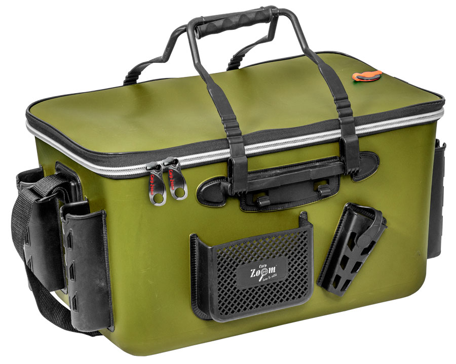 Velká multifunkční taška z nepromokavého materiálu EVA se svařovanými švy. Je ideálním řešením pro transport krmiva, nástrah nebo mokrého vybavení (vezírky, podběráky), protože nepropustí vodu ani pachy. Stejně dobře poslouží pro ochranu oblečení a cenností před deštěm.