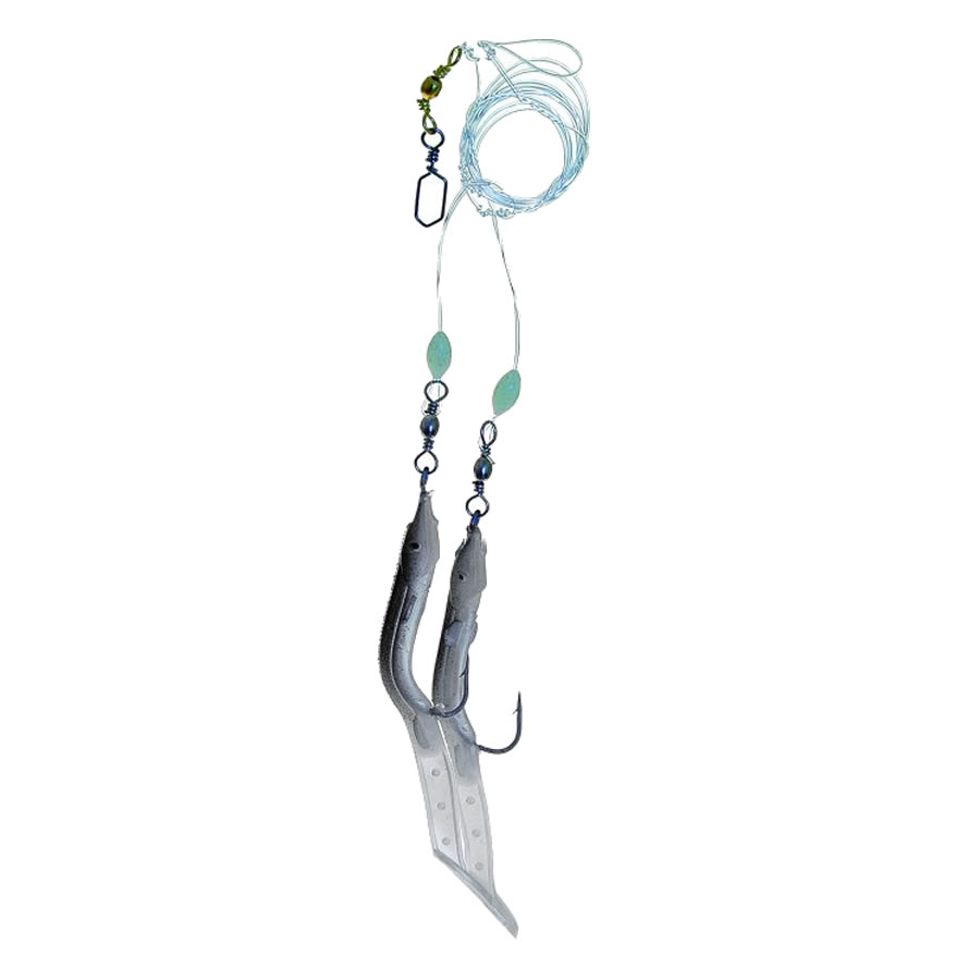Návazec obsahuje, pevný obratlík a karabinu k rychlé výměně spodního závaží, nebo pilkeru. Velikost háčků 8/0, síle návazce 0.8mm a délka 160cm.
