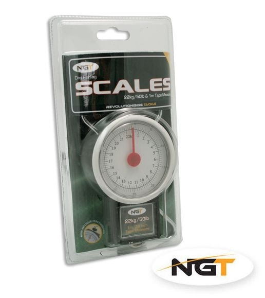 Mechanická váha pro vážení ryb. Váha je vybavena přehledným numerickým ciferníkem do 22kg a její součástí je metr. Váha má mechanické držadlo s pevným kovovým hákem.
