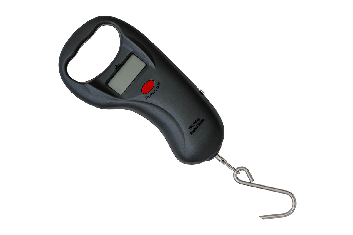 Kompaktní a praktická digitální váha s nosností do 50 kg a přesností vážení 10 g. Disponuje velkým, zeleně podsvíceným LCD displejem, který je čitelný i za šera. Užitečnou vychytávkou je integrovaný svinovací metr (1 m) přímo v těle váhy, takže změříte délku i váhu úlovku jedním nástrojem.