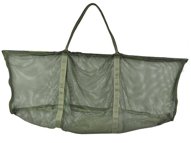 Taška je opatřena pevnými popruhy pro zavěšení na váhu a zipy po stranách, které zabraňují vypadnutí ryby během manipulace. Rozměr 130 x 50 cm pojme i kapitální kapry.