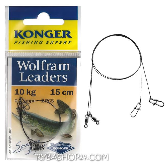 Kvalitní wolframové lanko na dravce s obratlíkem a bezpečnostním závěsem. Lanko je velmi jemné a mimořádně odolné.