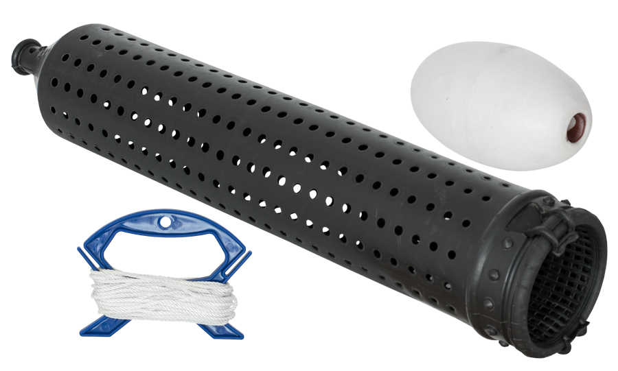 Sada obsahuje také výraznou bóji a pevný provázek, což zajišťuje snadnou lokalizaci krmného místa. Do spodní části tuby lze umístit zátěž (kámen/olovo), aby sestava stála stabilně na dně i v silném proudu nebo při vlnobití způsobeném lodní dopravou. Ideální pro lov na velkých přehradách a řekách.