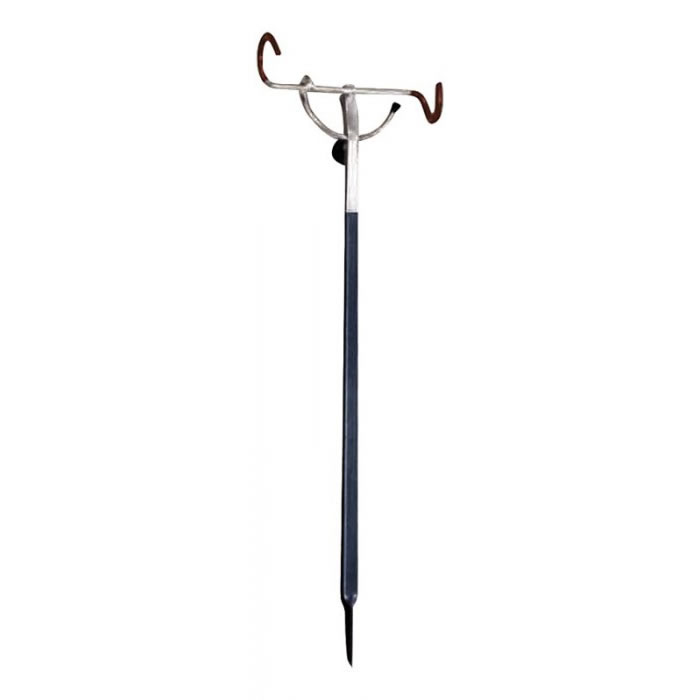 Kovový, teleskopický, zapichovací stojánek na prut.
