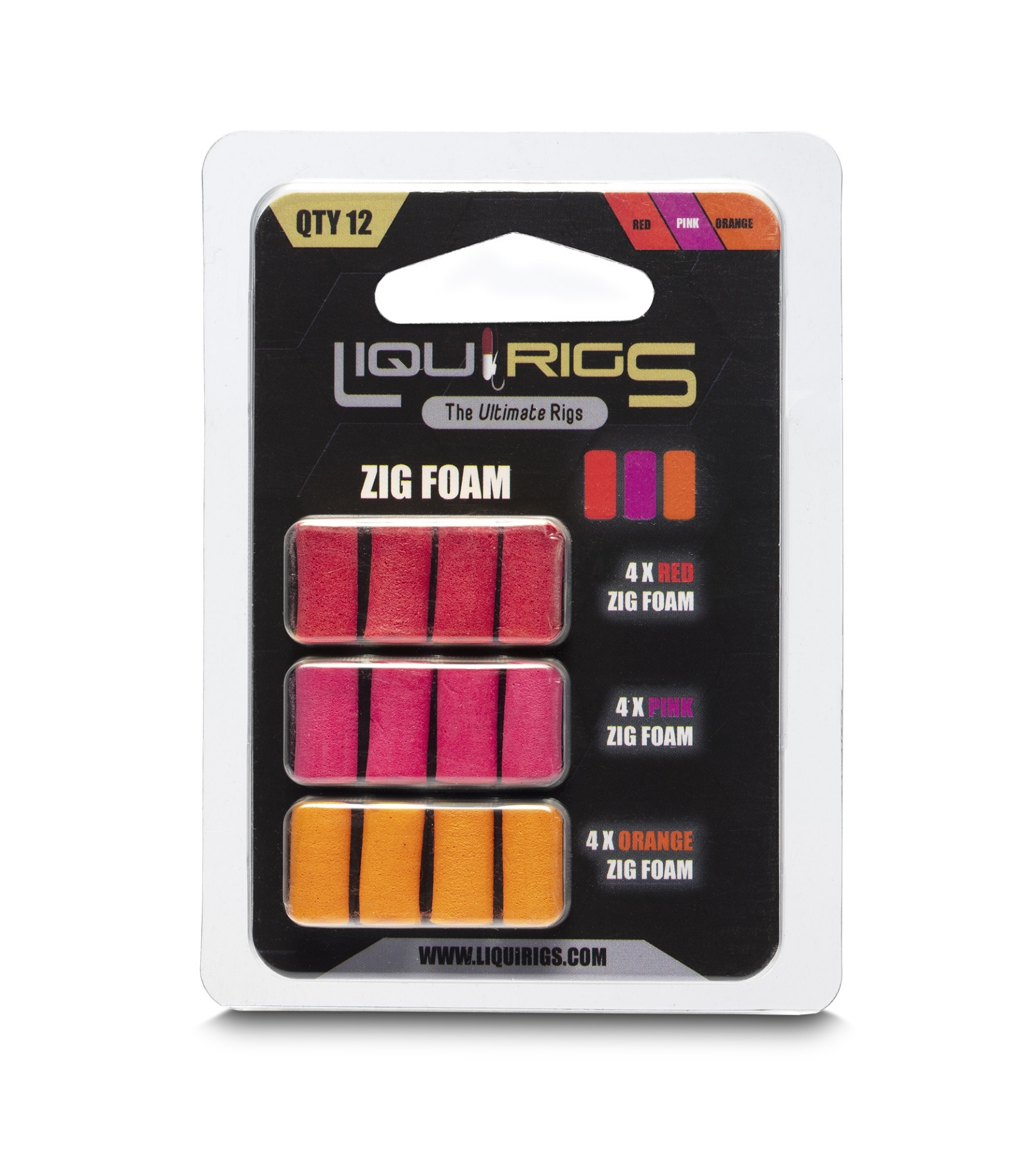 Die Liquirigs Liquid Zig Ersatz-Foams im Mix Rot, Pink und Orange wurden für eine schnelle optische Reizung entwickelt. Diese „warmen“ und aggressiven Farben sind in klarem Wasser und bei Sonnenschein extrem effektiv. Sie erzeugen unter Wasser ein unübersehbares Signal. Der Schaumstoff ist porös genug, um Lockstoffe aufzunehmen, und bietet einen enormen Auftrieb für lange Zig-Vorfächer.