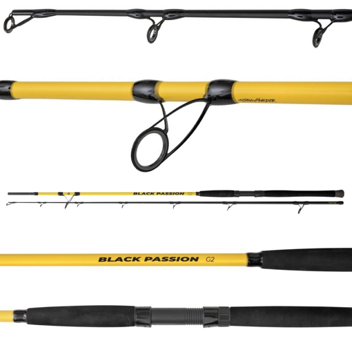 The popular Black Passion rod series has been further developed and is now entering its second generation. Black Passion G2 rods come with a very slim, but ultra strong blank and offer an optimal rod for all situations in modern catfish fishing at a very favorable price-performance ratio. This rod series will not only be loved by newcomers, experienced catfish anglers will also appreciate the power blanks of the G2 rods. The high-quality reel seat is suitable for large models of reels or reels, while the strong Duplon handle provides a firm grip when handling the rod and during a fight. The guides of the Black Passion G2 rod series are designed for the toughest demands and fishing with braided lines and allow the use of a reel or a casting reel.