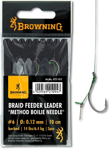 Krátké method feederové návazce na superměkké pletené šňůře. S boilie jehlou na vlasu pro jednoduché nastražení s mimořádně pevným Mustad háčkem. Balení obsahuje 3 ks.
