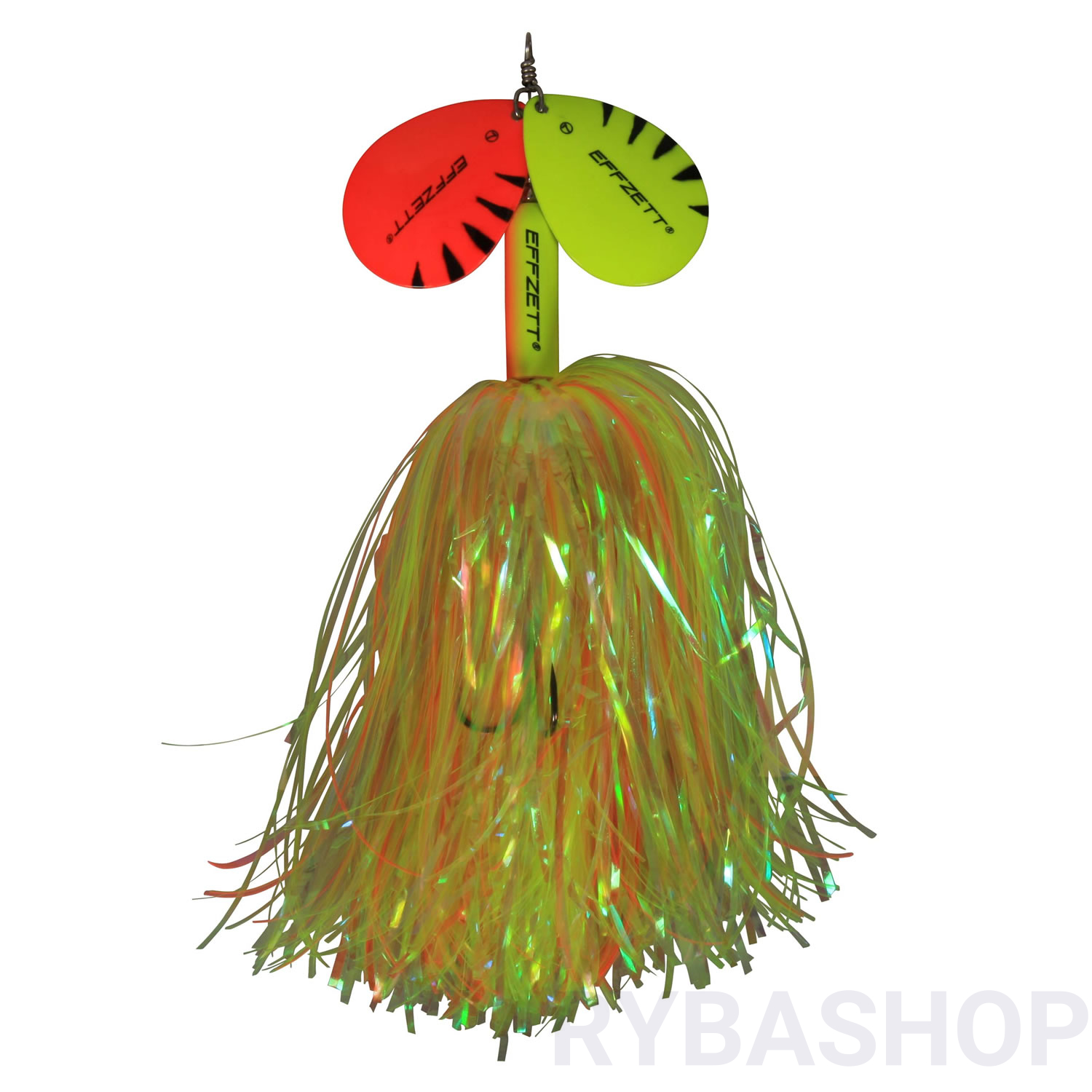 Pike Rattlin 'Spinner je v současné době nejúčinnějším prostředkem k lovu velké štiky. Tato návnada přitahuje pozornost štiky třemi způsoby. První z nich je široká škála sedmi barev lopatek spojených s velkými barevnými střapci vyrobenými z reflexního materiálu. Druhá je speciální dvoukřídlá konstrukce lopatek, která během své práce vysílá akustické vlny, kterým prostě nedokáží velké štiky odolat. Ale to, co dělá tento spinner tak odlišným od všech ostatních rotaček na dnešním trhu, je jedinečný design těla. Uvnitř těla jsou umístěny kovové kuličky, jejichž úkolem je vytvářet dodatečné vibrace, které v okamžiku vydráždí každou velkou štiku. Rotačky EFFZETT Pike Rattlin 'Spinner jsou vybaveny velmi ostrými trojháčky FZ a dodávají se ve velikosti číslo 6.