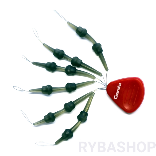 Závěsky na Chod rig slouží pro snadné vytváření montáže Chod Rig nebo helikoptérové montáže. Jejich používání je maximálně spolehlivé díky unikátní kónické konstrukci obou konců, která zajišťuje ideální polohu a pohyb návazce. Systém se skládá z běžce a dvou vymezovacích pojistných gumiček. Závěs je navlečen na praktickém vlasovém adaptéru, který Vám umožní stáhnout ho jednoduše na vlasec, shock leader nebo koncový fluorocarbon.