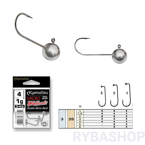 Micro hlavičky pro lov s miniaturními gumovými nástrahami. Některé nástrahy mají tělo tak měkké, že je nemožné řádně nasadit gumu na hlavičku s tradičním nálitkem. Tyto malé hlavičky Vám umožní perfektní prezentaci nástrahy bez rizika jejího poškození během navazování. Vynikající háčky Kamatsu použité k jejich výrobě umožní spolehlivé zaháknutí a efektivní vytažení, což zaručí spokojenost s provedeným výběrem.