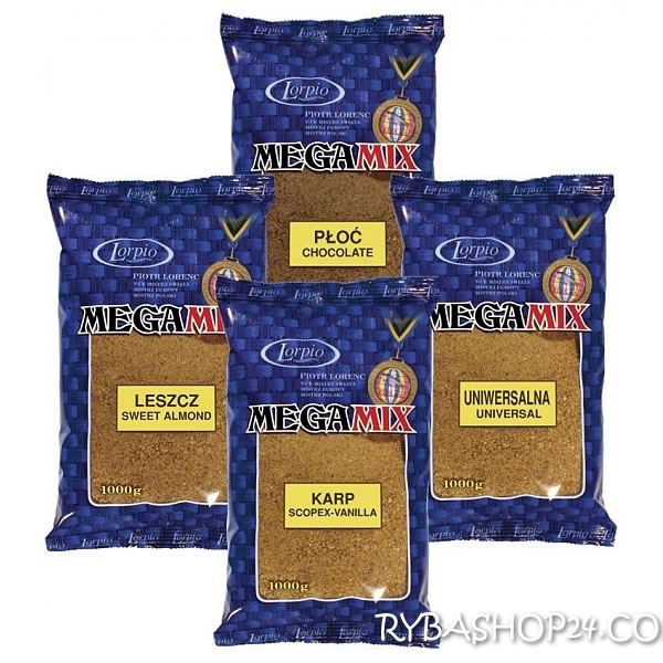 Směs pro vnadění velkých kaprů a kaprovitých ryb Lorpio Megamix je vyrobena z kukuřičných a obilných šrotů, pekárenských a cukrářských výrobků, chuťových a pachových stimulátorů a doplněna o další speciální přísady a také řadu bioaktivátorů povzbuzujících zvýšené přijímání potravy. Navlhčete směs dle požadované konzistence, utvořte koule, popř. naplňte krmítko a vhodným způsobem dopravte krmení na místo lovu. Lorpio Megamix je od uvedení na trh jednou z nejproávanějších vnadících a krmítková směsí, rybáři ceněna pro svou univerzálnost. Je stejně účinná na klidných vodách tak i na tekoucích dynamičtějších řekách. Směs je napuštěna vonnými oleji. Láká různé druhy ryb a stimuluje je k intenzivnímu krmení. Tato vnadící směs vám zaručí úspěch.