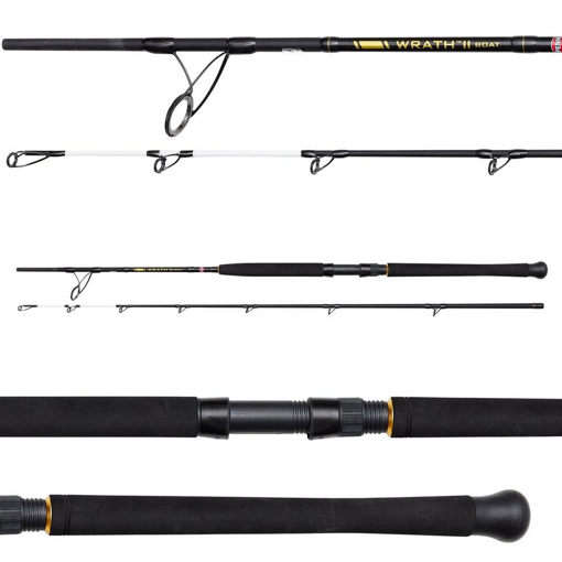 The PENN Wrath II Boat rods are available in three weight classes: 12-20lb, 20-30lb and 30-50lb. The rods are equipped with K-frame stainless steel guides with titanium oxide inserts for extra durability. The 12-20lb version allows for exciting fishing due to the great bend on the rod. The 20-30lb version is perfect for the angler who likes to go out on a charter or boat to fish the wrecks for cod, pollock or seabass, and the 30-50lb version is more heavy duty and might even be used for fishing for big cod and halibut in Norway. These rods offer great value for money and are very suitable for the angler who does not want to spend a large amount of money but does want to have a good quality rod.