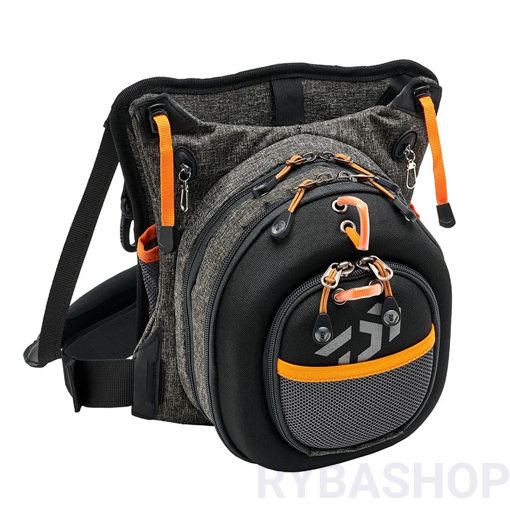 Navrženo pro nošení na hrudi pro okamžitý přístup ke všem nezbytným předmětům. Čtyři oddíly; jeden se zajištěným otevřeným přístupem, jeden se zipem a rýhovanou podložkou pro uschování nástrah a mušek plus dvě tvrdé skořepiny (na zip). Dva zabudované zatahovací zingery umožňují rychlý přístup k peanům a kleštím. Pohodlný neoprenový popruh na krk a nastavitelný bederní pás zajišťují bezpečné a snadné nošení, zatímco dvě spony na karabinu umožňují integraci do ramenních popruhů batohu.