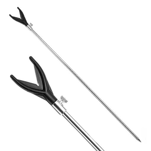 Výškově stavitelné ocelové podpěrky pod prut aretované šroubkem. Podpěrka, vidlička, je zakončena plastovým dílem ve tvaru "U" (zadní) černé barvy. Plast je nárazuvzdorný a odolávající teplotním změnám.