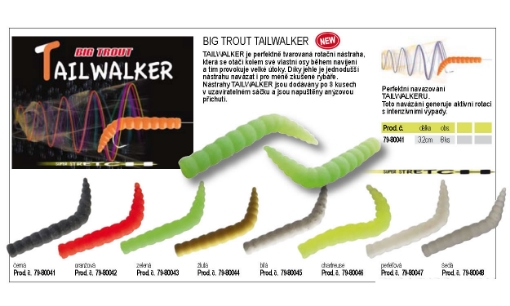 Tailwalker je perfektně tvarovaná rotační nástraha, která se otáčí kolem své vlastní osy během navíjení a tím provokuje velké útoky.Balení: 8ks