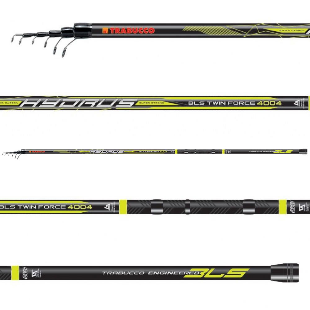 L'Hydrus BLS Twin Force de Trabucco est une canne bolognaise avec une action de pointe rapide, excellente pour la pêche en eau salée et en eau douce avec un poids maximum du montage 20-25 grammes et des maillons d'un diamètre maximum de 0,20-0,22 mm. Blank en carbone Haute Résistance. Guides S-SiC avec cadre en Y sans vibration, joliment enveloppé. Guides coulissants enveloppés sur des tubes en carbone (également sur la deuxième section pour une action parfaite). Porte-moulinet à plaques taille 6, en acier inoxydable avec capots doublés de caoutchouc. Embout de crosse en aluminium avec insert en caoutchouc.