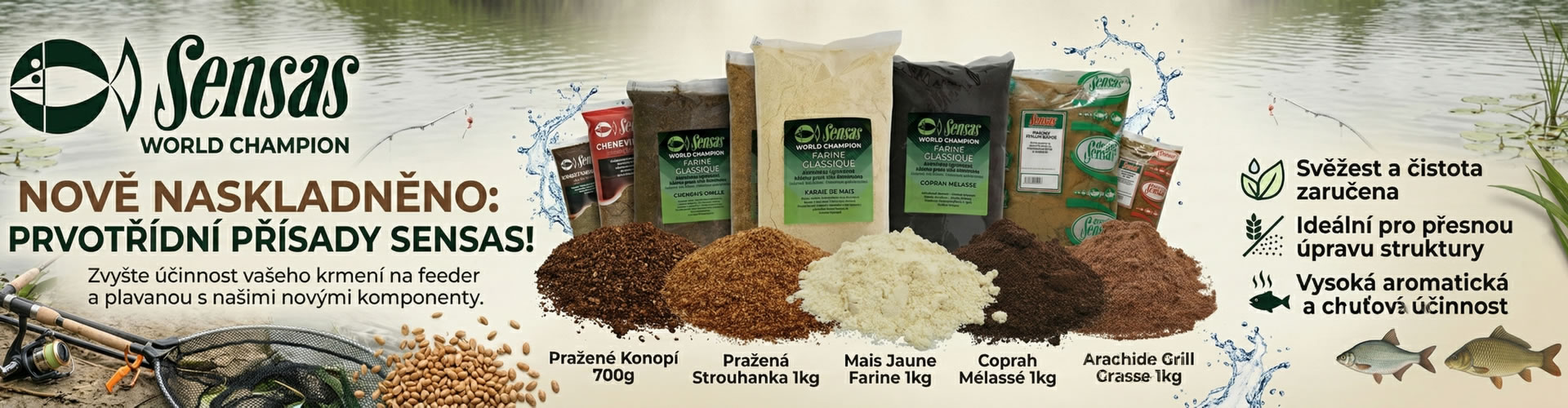 Słodki dodatek Sensas Coprah Nature 1kg z kopry kokosowej błyskawicznie wabi leszcze i płocie. Niska kleistość zapewnia aktywną pracę w wodzie i najpewniejsze wyniki w letnim revíru w terenie.