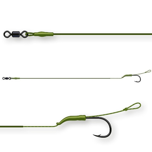 Ten przypon był sukcesem w złowieniu wielu dużych karpi przez lata. Sztywna część powlekanego przyponu (25lb) utrudnia karpiom pozbycie się przynęty/haka.